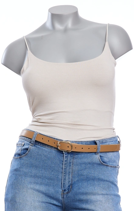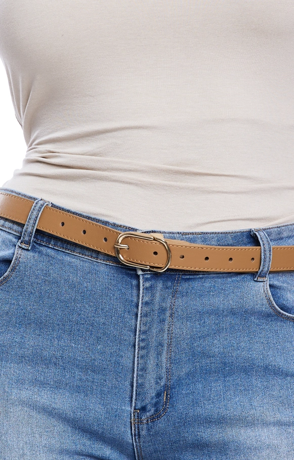 Ceinture fine avec boucle dorée pour un style élégant et sophistiqué.