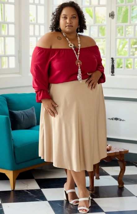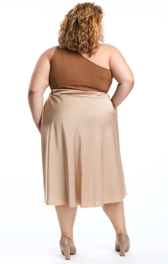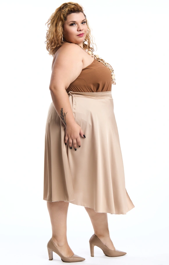 Thais est la petite sœur de Thaissa, une jupe évasée en satin en version mi-longue, pour apporter légèreté et glamour à votre tenue.