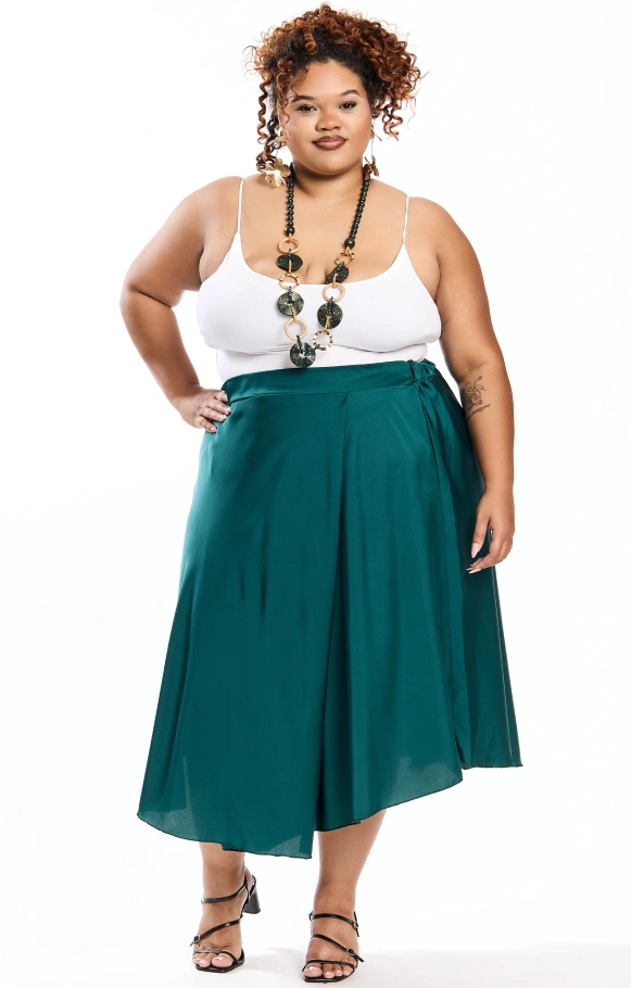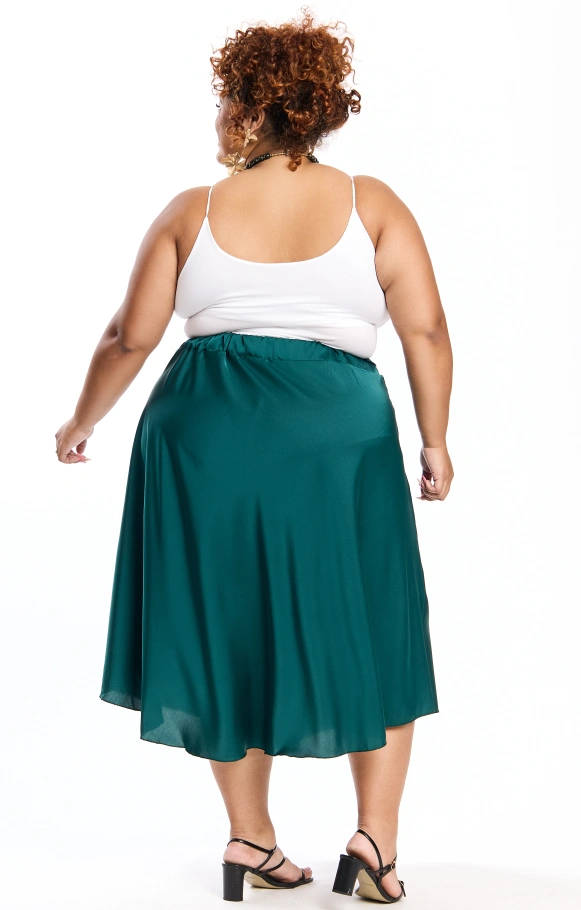 Thais est la petite sœur de Thaissa, une jupe évasée en satin en version mi-longue, pour apporter légèreté et glamour à votre tenue.