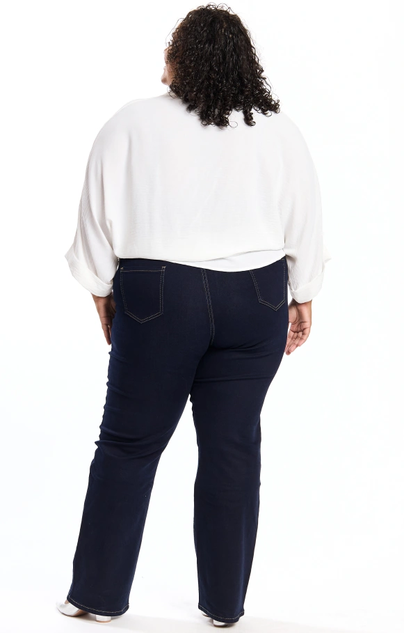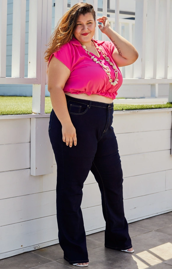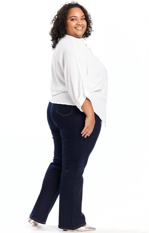 Réalisez un look impeccable avec notre pantalon jean évasé, un choix qui allie tendance et confort pour une allure résolument moderne.