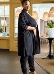 Confortable et élégant, ce gilet long Loredana est confectionné dans la même matière fluide et extensible que les robes Eirlys et Eira.
