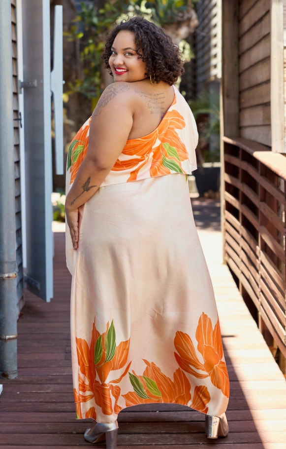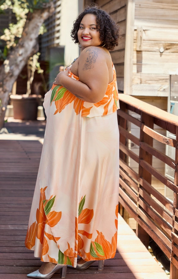 La version Athéna dans notre collection Orchidée fera de cette robe imprimée une tenue qui ne passera pas inaperçue !