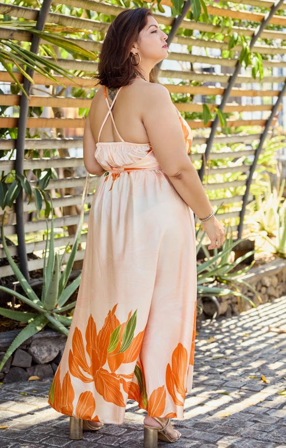 Laissez-vous séduire par la robe longue Éléa à fines bretelles, pièce phare de notre collection Orchidée.