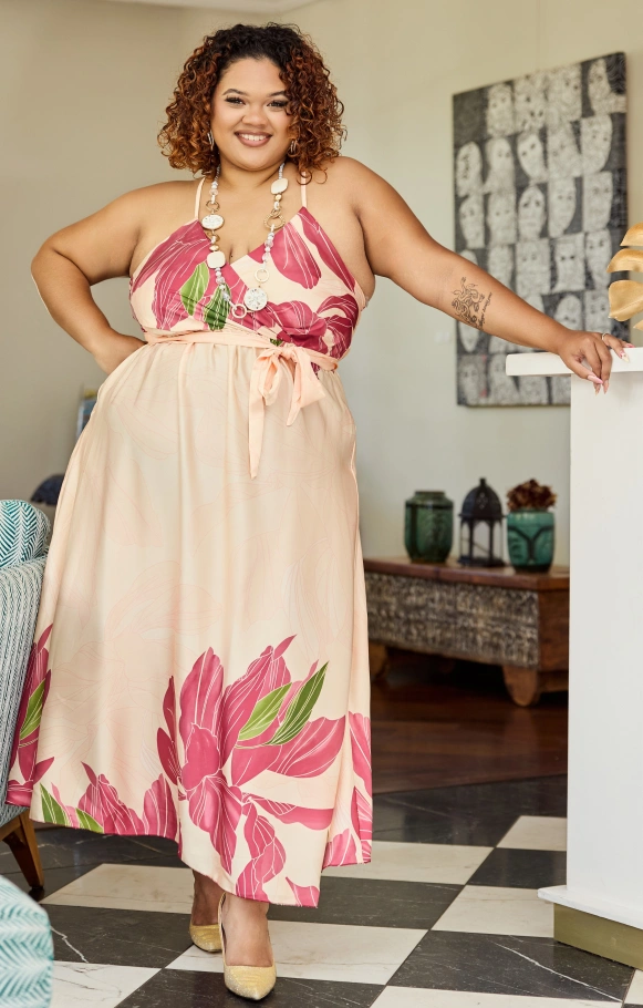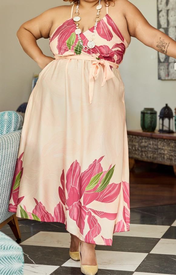 Laissez-vous séduire par la robe longue Éléa à fines bretelles, pièce phare de notre collection Orchidée.