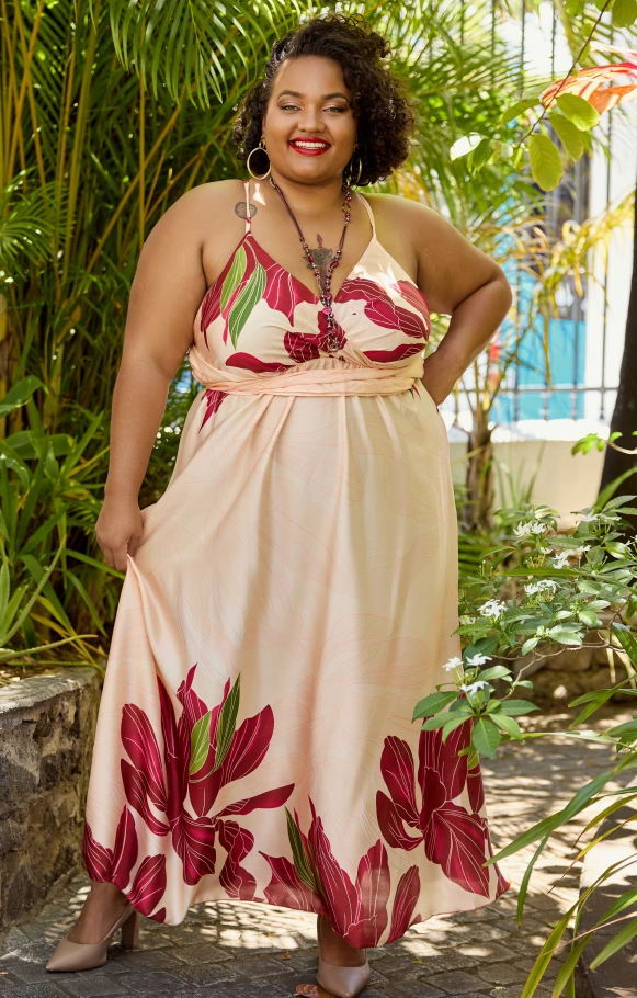 Laissez-vous séduire par la robe longue Éléa à fines bretelles, pièce phare de notre collection Orchidée.