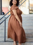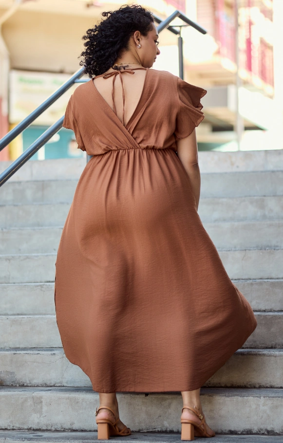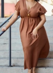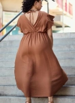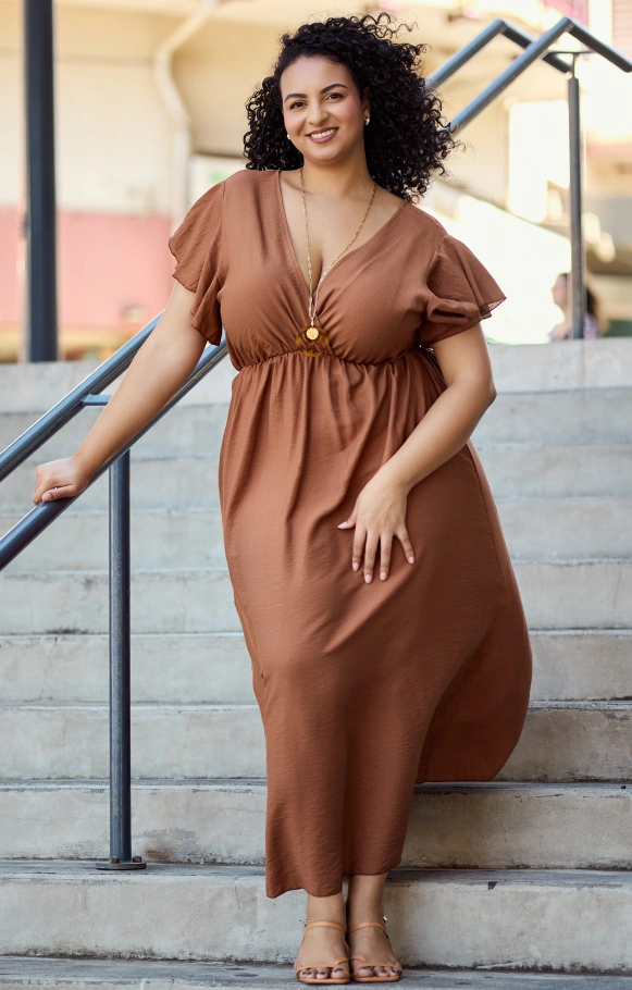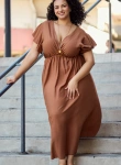 Elisenda est une robe à la coupe fluide qui épouse le mouvement, ses manches aériennes apportent de la légèreté, et son décolleté élégant illumine la silhouette.