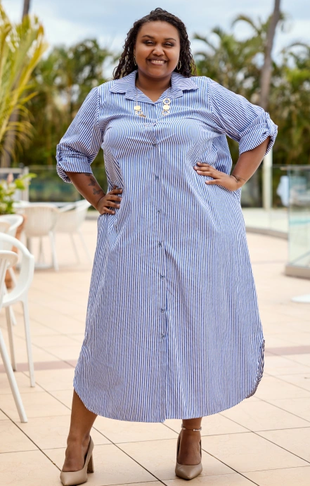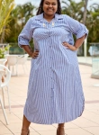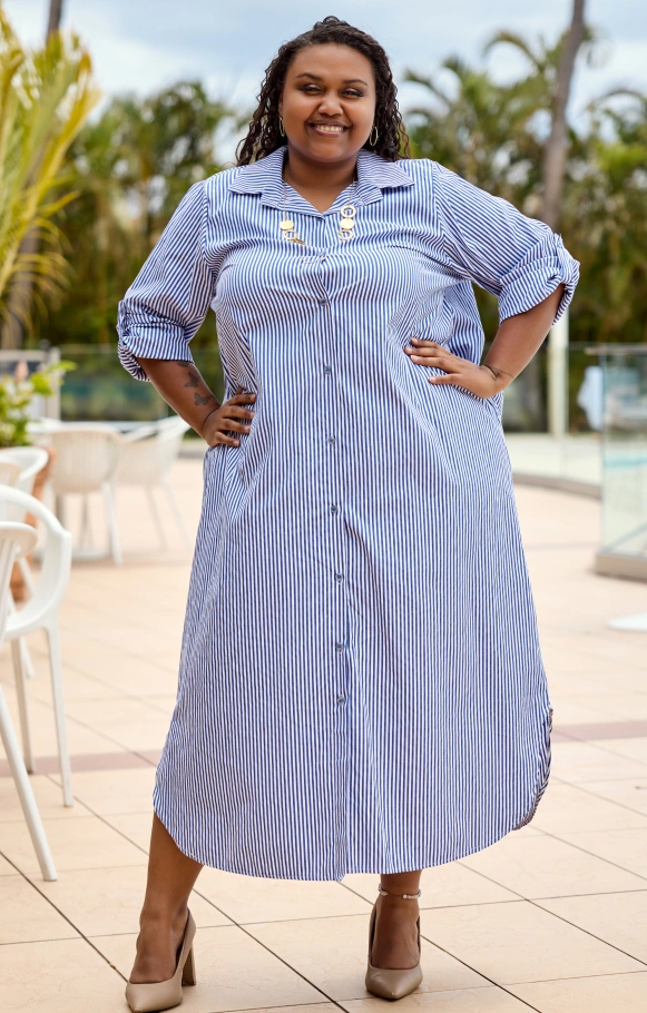 Chic et décontractée, la robe chemise longue Karima à rayures séduit par sa coupe fluide et sa légèreté.