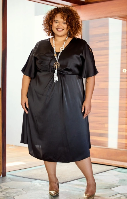 Avec son décolleté original et ses plis croisés, sa coupe est idéale pour les poitrines généreuses.