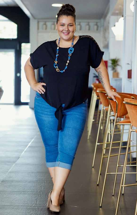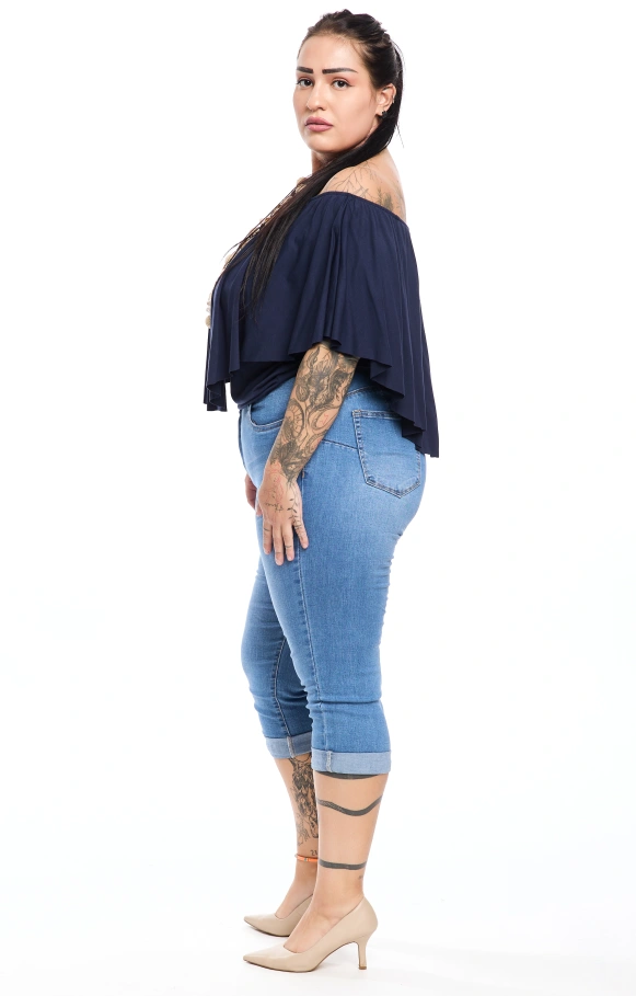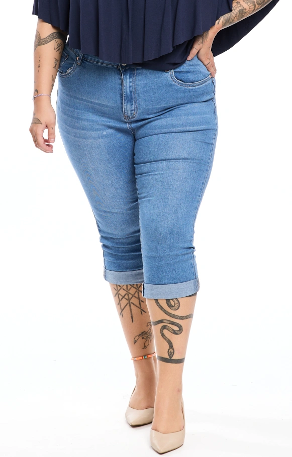 Pour la période estivale ou tout simplement pour être totalement libre dans vos mouvements, le pantacourt ATHYS, à revers, avec son effet push-up, redessine vos courbes et épouse à merveille celles-ci.