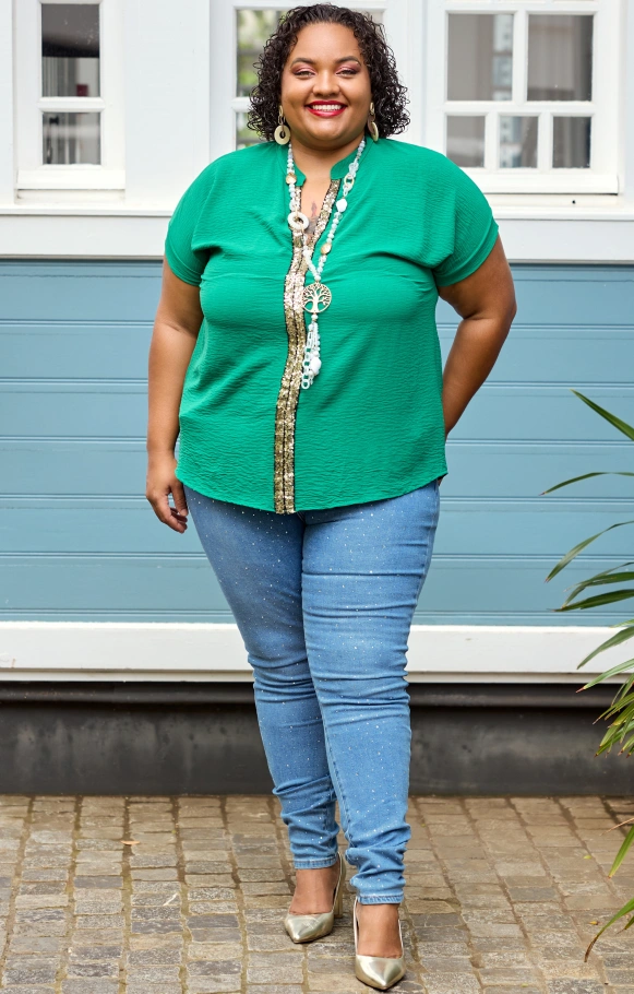 La blouse Lyra, avec sa bande à sequins, sera un allié parfait pour apporter une touche de brillance à votre tenue de sortie.