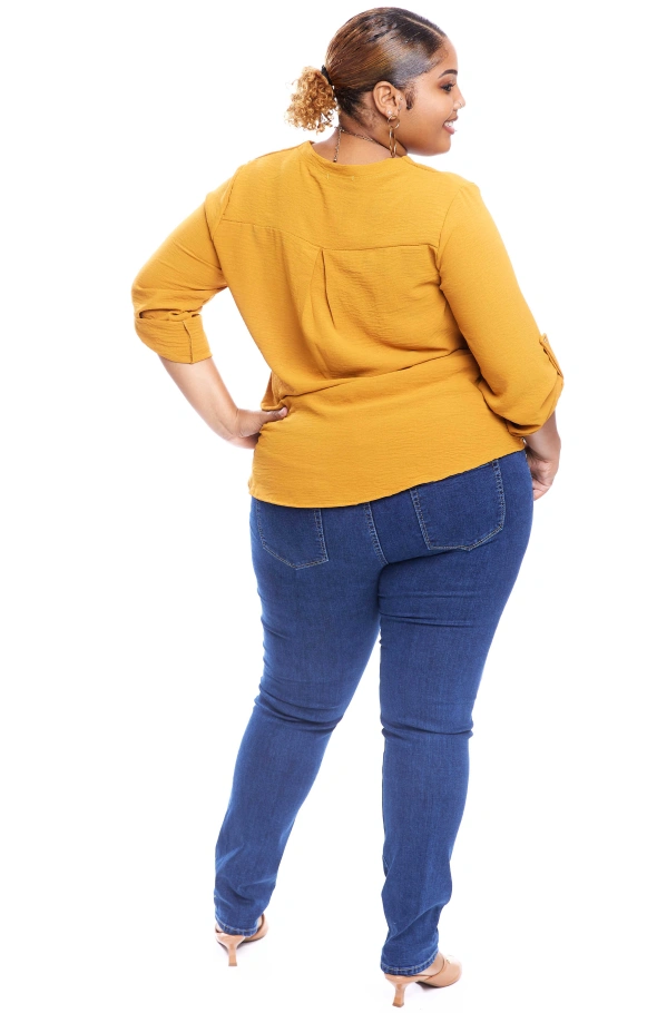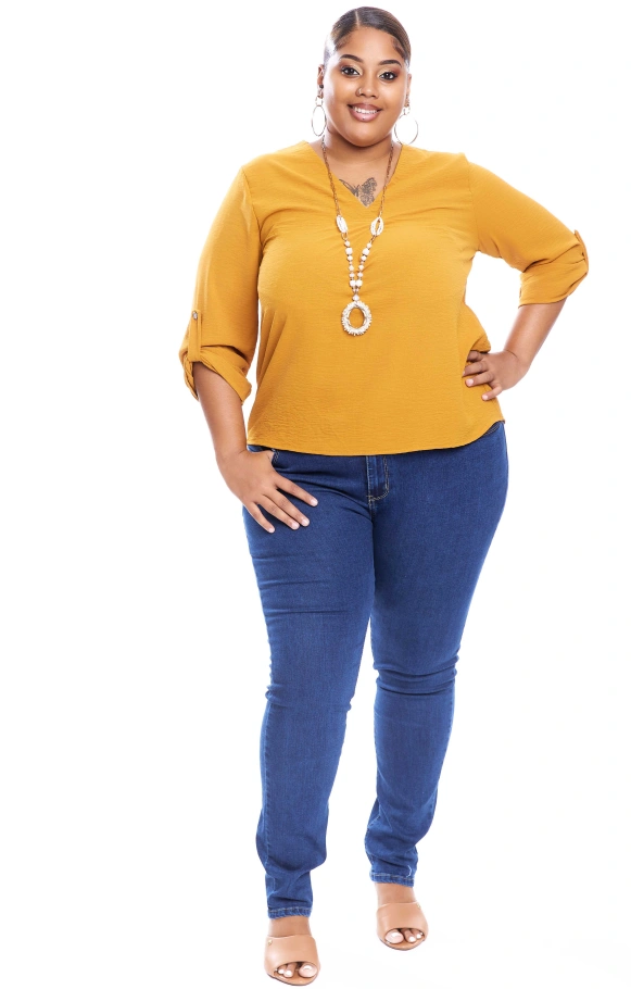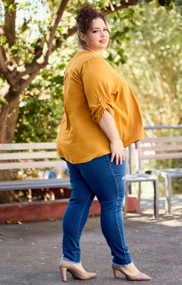 Notre haut Maella se caractérise par sa simplicité. Avec ses manches trois quarts et son col V, pas de fashion faux pas assuré !