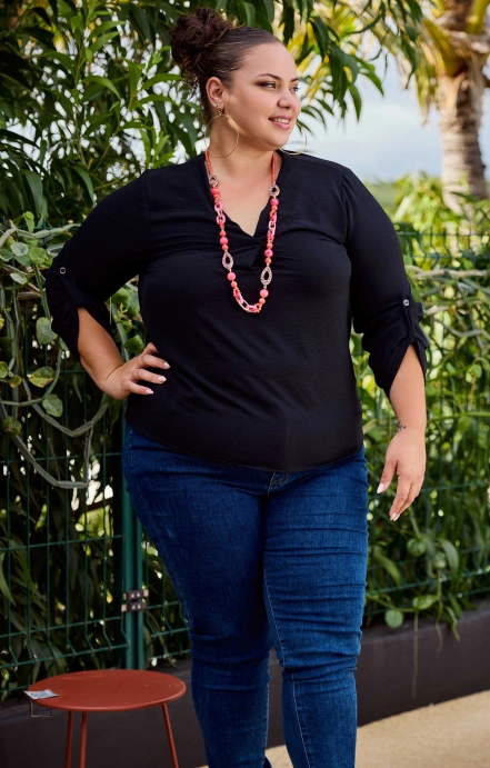 Notre haut Maella se caractérise par sa simplicité. Avec ses manches trois quarts et son col V, pas de fashion faux pas assuré !