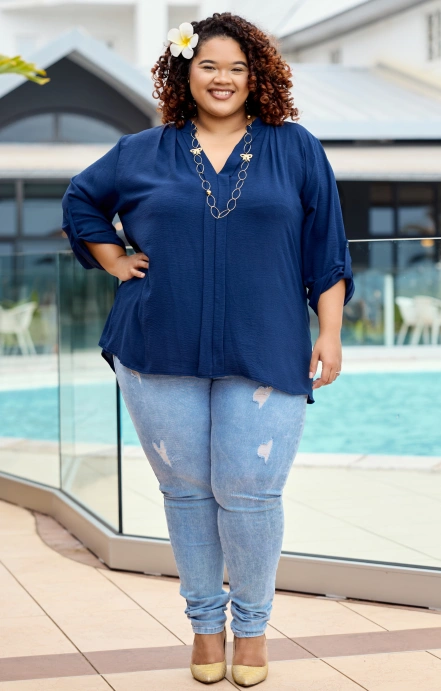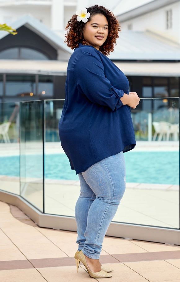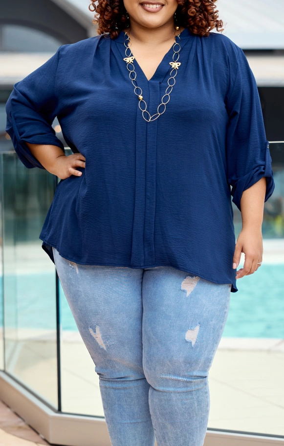 Craquez pour la blouse Maha, avec ses manches 3/4 ajustables grâce à un petit bouton discret qui permet de les relever selon vos envies, un détail à la fois pratique et raffiné.