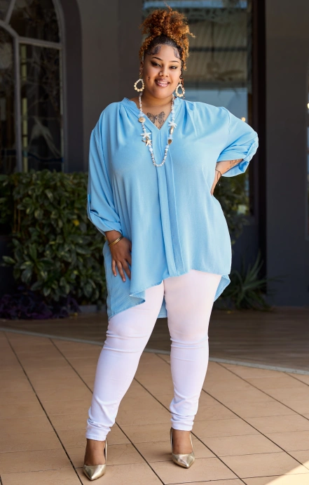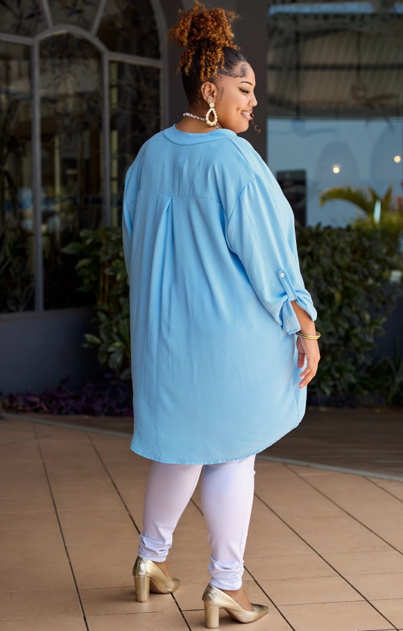 Inspirée de la blouse Maha, la tunique blouse Mahdia offre une coupe plus longue et fluide pour un tombé tout en légèreté.