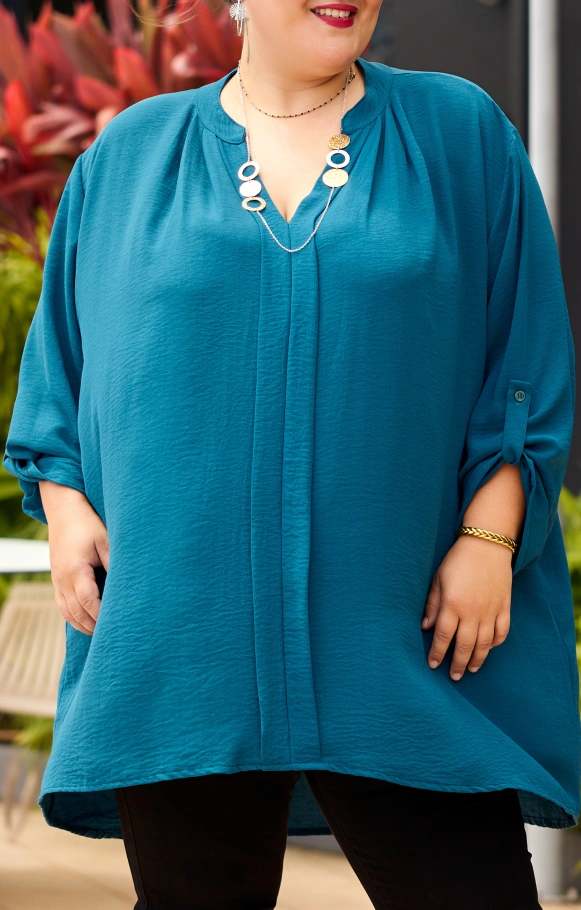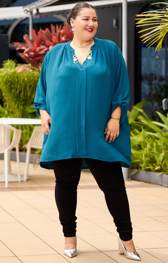 Inspirée de la blouse Maha, la tunique blouse Mahdia offre une coupe plus longue et fluide pour un tombé tout en légèreté.