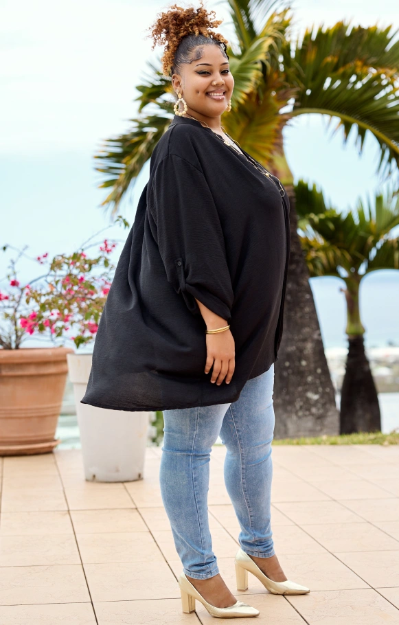 Inspirée de la blouse Maha, la tunique blouse Mahdia offre une coupe plus longue et fluide pour un tombé tout en légèreté.