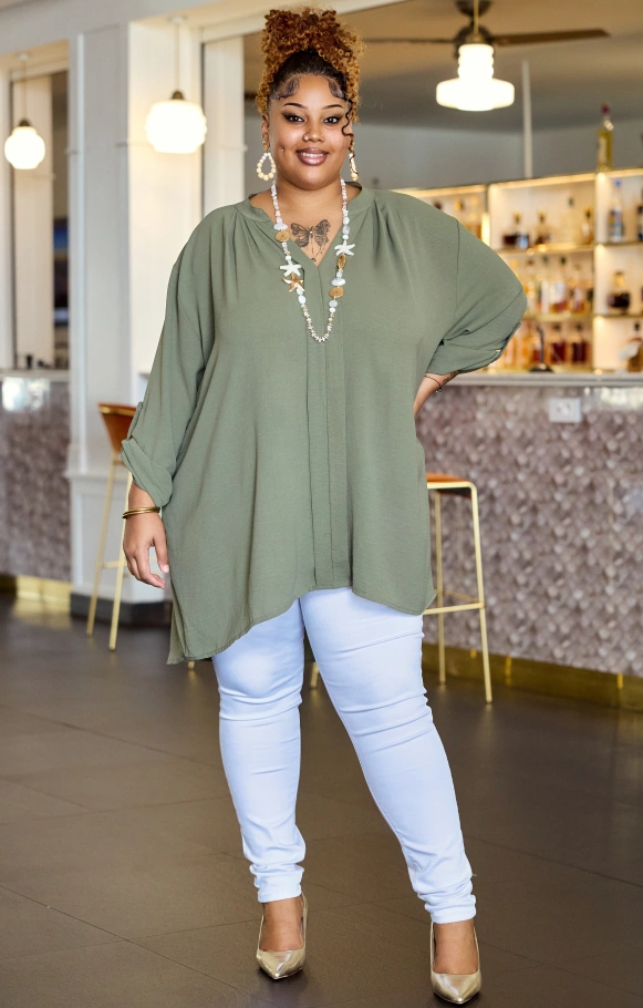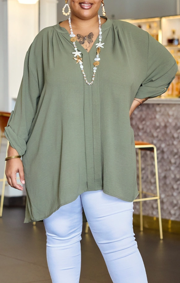 Inspirée de la blouse Maha, la tunique blouse Mahdia offre une coupe plus longue et fluide pour un tombé tout en légèreté.