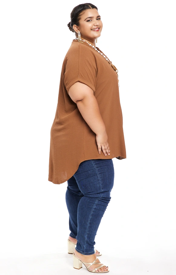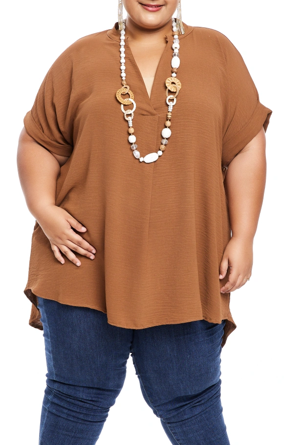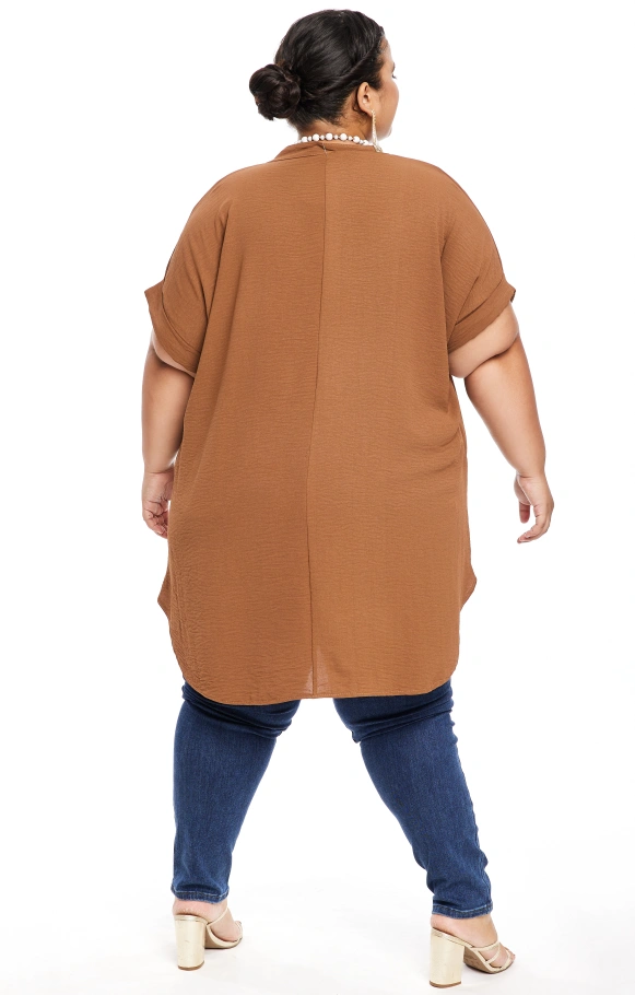 Il possède des manches courtes, ainsi qu'un col V. L'arrière du top est légèrement plus long.