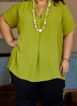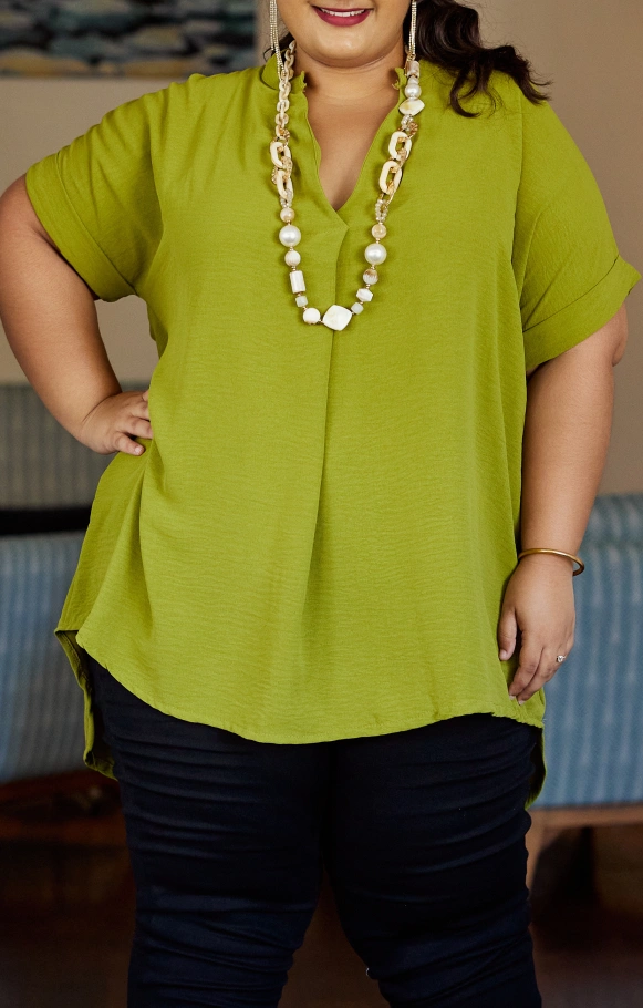 Il possède des manches courtes, ainsi qu'un col V. L'arrière du top est légèrement plus long.