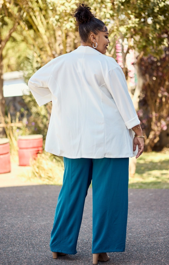 La veste Ilouka combine élégance et confort avec sa coupe ouverte, ses manches 3/4 à revers et sa matière fluide extensible.