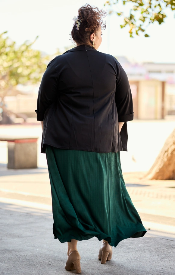 La veste Ilouka combine élégance et confort avec sa coupe ouverte, ses manches 3/4 à revers et sa matière fluide extensible.