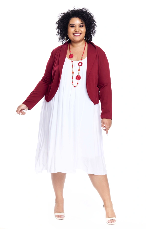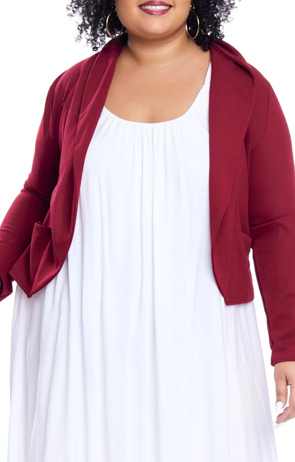 Laissez-vous charmer par cette veste courte au style intemporel, comportant un col, des manches longues et des poches pour une allure sophistiquée.